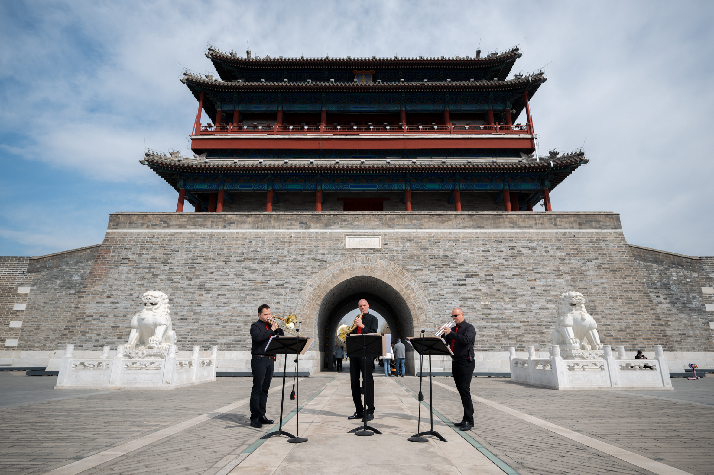 维也纳交响乐团乐手在永定门城楼下演奏 袁野摄