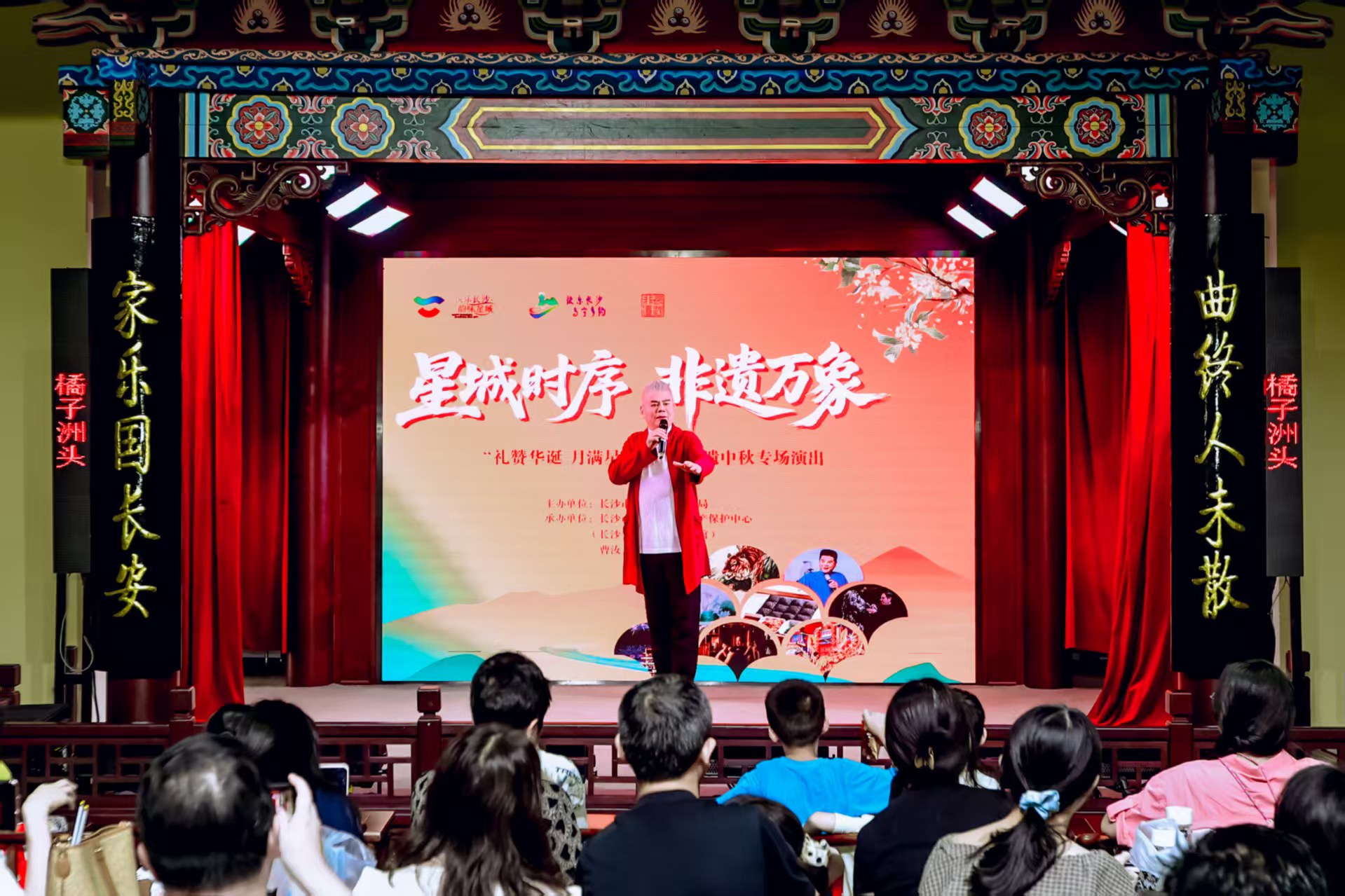 在“非遗有戏”板块,长沙非物质文化遗产馆连续6天为市民、游客奉上11场精彩演出,汇聚多家优秀演出团体,涵盖音乐、话剧、民乐演奏、戏曲等多种艺术形式,以非遗之美致敬时代。长沙非遗戏曲社带来长沙弹词、花鼓戏、快板等节目;《西汉有戏·辛追的家宴》以小剧场形式生动还原历史场景,带领观众穿越千年,感受汉代风华;长沙歌舞剧院带来连续两日的惠民演出,用激昂的音乐与优美的舞蹈唱响时代欢歌;湖南省艺术培训行业协会古琴专业委员会则以清微淡远的琴音,呈现“月满星城 非遗寄情”的雅致意境;曹汝龙戏曲工作室优秀演员登台,湘剧声腔铿锵婉转。
