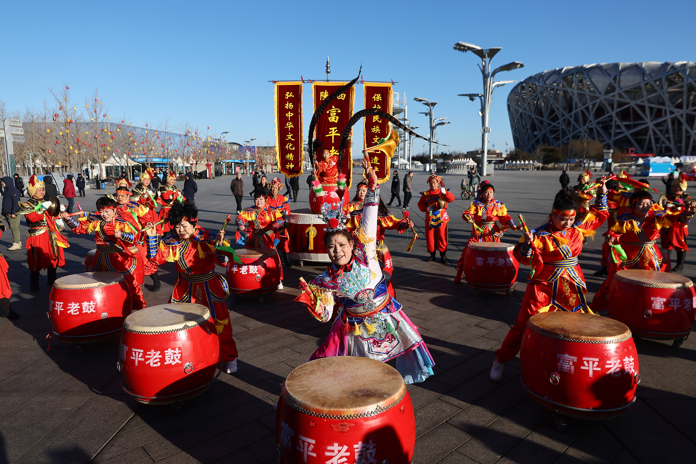 为庆祝北京中轴线和春节申遗成功后的首个春节,2月12日(正月十五)元宵节当天,由北京市文化和旅游局、中国非物质文化遗产馆、北京市朝阳区人民政府主办的2025“京彩中轴线 非遗过大年”系列非遗特色春节庆祝活动在奥林匹克公园举办。活动现场,北京白纸坊太狮、浙江浦江板凳龙、福建连城姑田游大龙和陕西老庙老鼓轮番上阵,让现场观众沉浸在节日欢乐氛围的同时感受非遗的魅力。