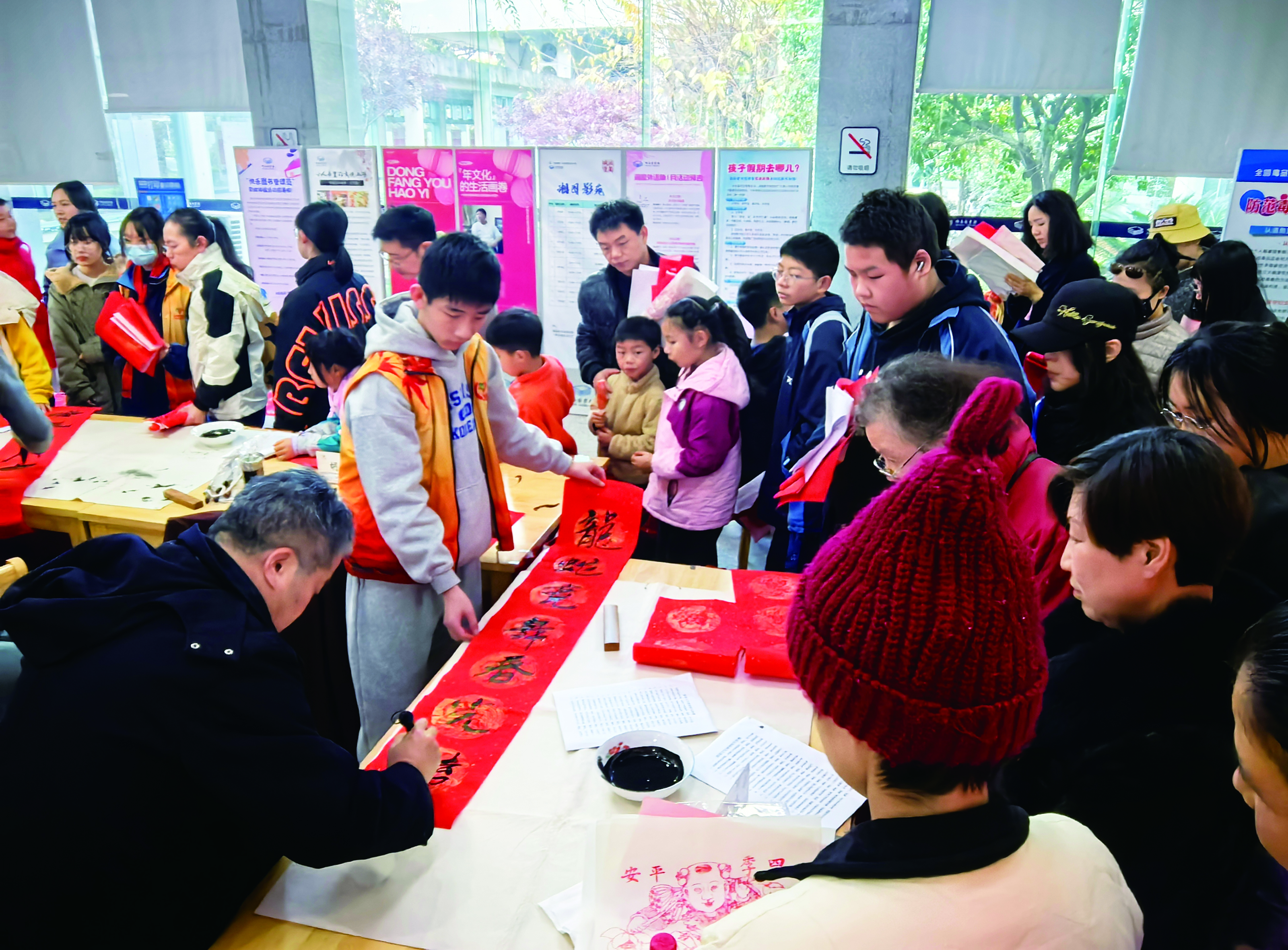 湖南图书馆读者活动部主任李婷介绍:“我们的新春文化庙会始终关注民俗文化的普及与传播,推动中华文明的守护与传承,活动涵盖春联、剪纸、戏曲、年画、木雕、茶艺、花道等,激发群众对传统文化的关注与热爱。其中,写春联、剪窗花、印年画是深受读者喜爱的经典保留项目。”