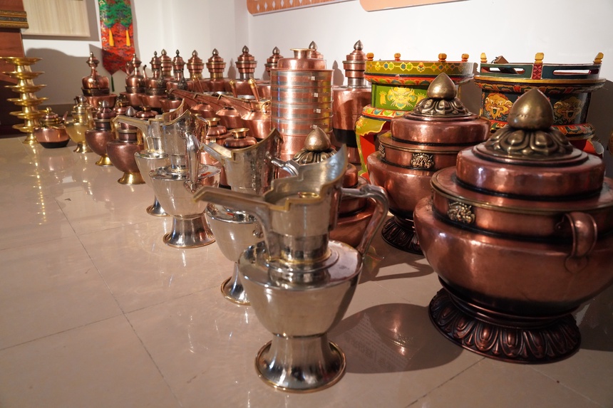 公司产品以纯铜锻制为主,制作周期通常需10天至20天。每件铜器从成形到打磨上色,皆为纯手工操作,展现出藏族工匠对器物之美与精神信仰的敬畏。