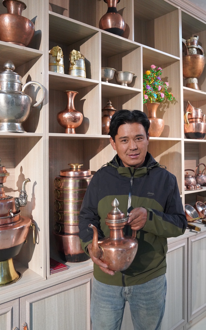 在他的带领下,岗则铜器多次亮相北京国际文化创意产业博览会、西藏雅砻文化节、“文化和自然遗产日”等活动,并于近年正式列入自治区级非物质文化遗产代表性项目名录。