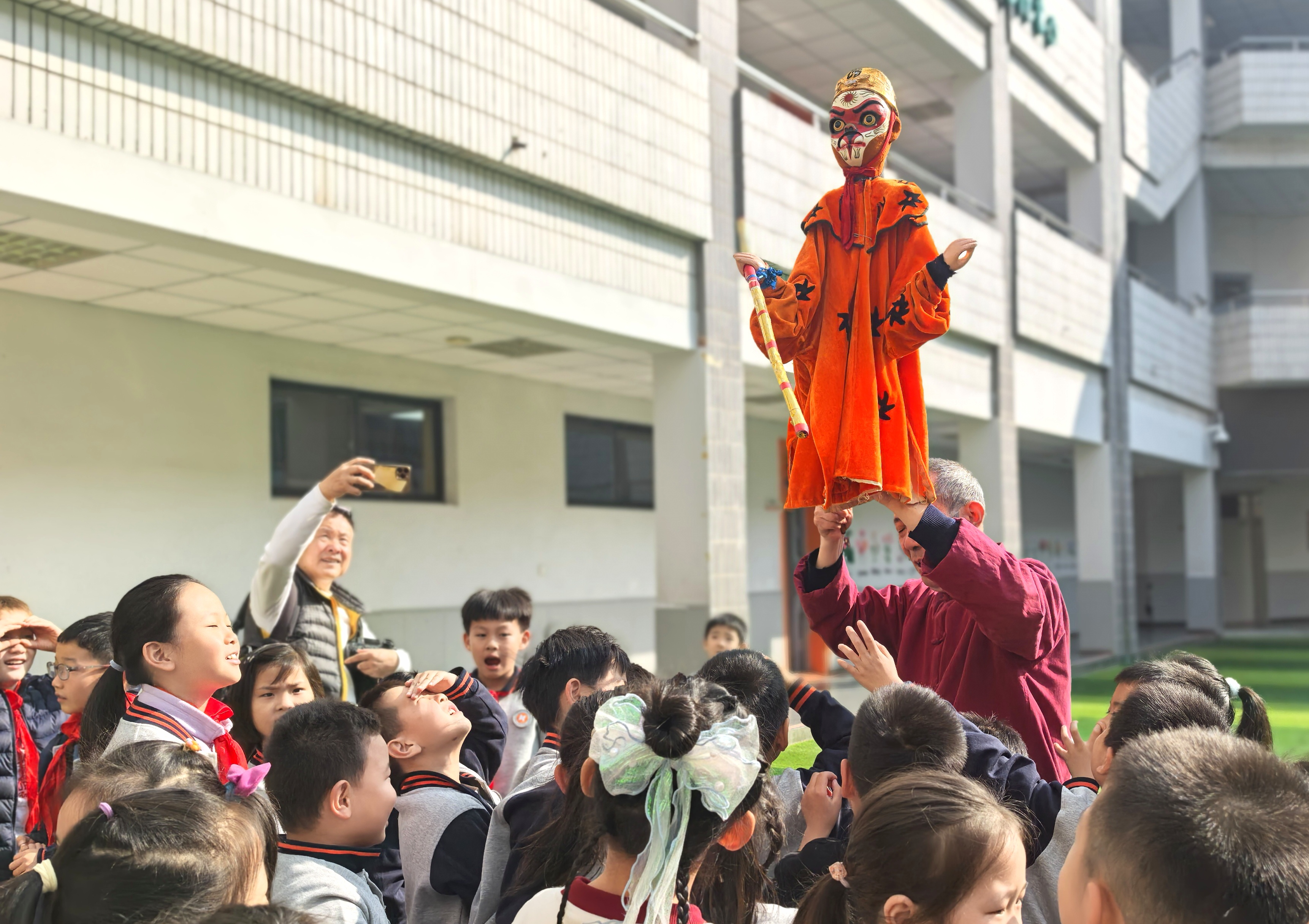 10月28日下午,由西安市群众艺术馆主办,西安市非物质文化遗产保护中心、西安市非物质文化遗产博物馆承办的“指尖传非遗 课堂润童心”西安非遗传承志愿者进课堂活动走进西安外国语大学附属学校,通过手工技艺教学、非遗展演进班等环节,让小学生直观感悟并亲手体验华山戏法、木版拓印、棉絮画、面塑、杖头木偶等非遗项目的魅力。