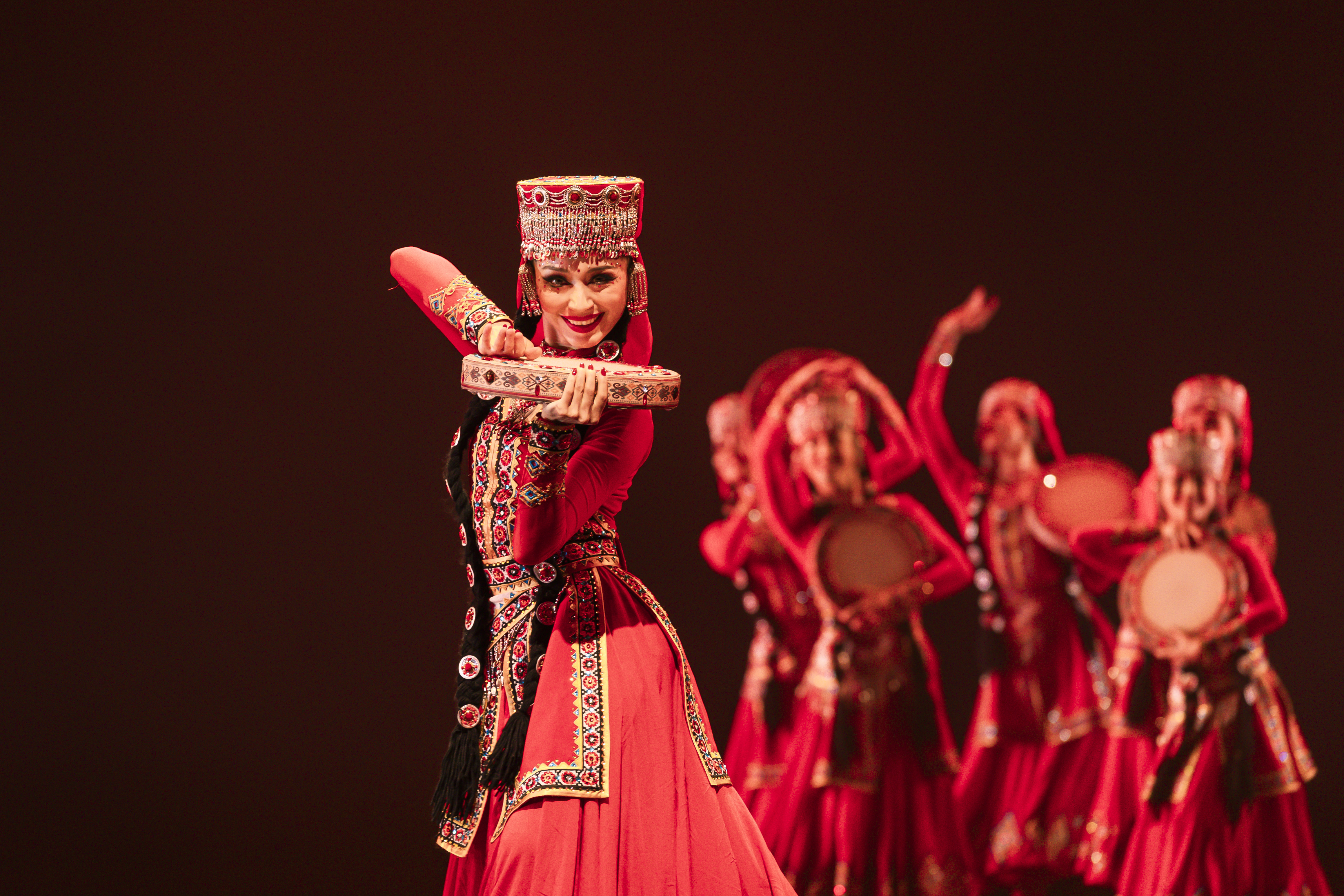 整场演出最动人的是各民族文化的互鉴融通与民族团结的深厚情谊。舞蹈《阿达西们》围绕“朋友”这份情感来创作,融合多民族舞蹈语言与现代编排手法,艺术化呈现新时代各民族守望相助、团结奋进的动人画卷。《红妆·红》展现了一位即将出嫁的新娘对美好生活的向往与追求,诠释绿洲文化下新疆的风土人情与习俗,传递共享共赏、和谐美好的社会风貌。