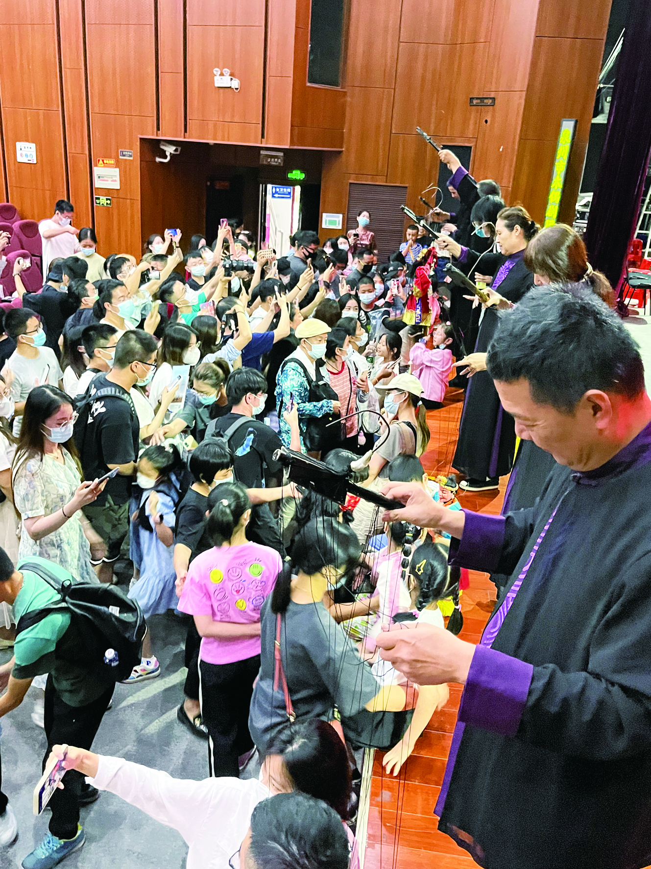 泉州提线木偶戏演出结束后,演员与观众互动。 洪世键供图