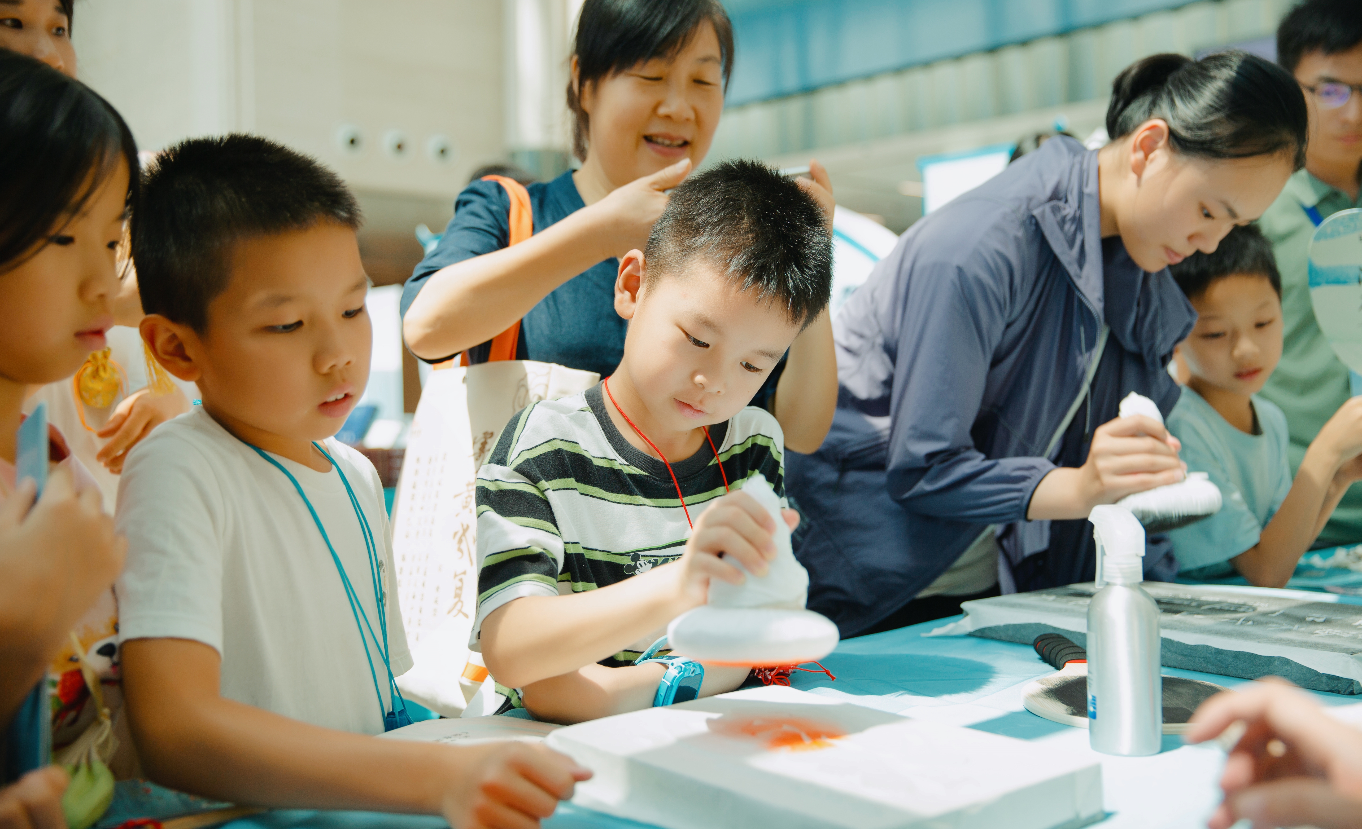 读者在江右晒书会体验拓印和雕版印刷项目 江西省图书馆供图