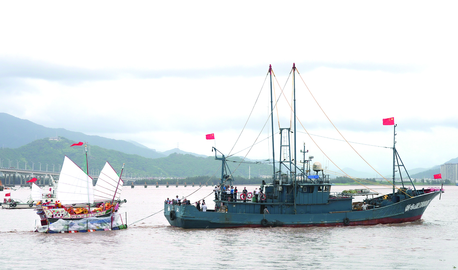 7月22日,渔船拖着“大暑船”出海。 新华社记者 翁忻旸 摄