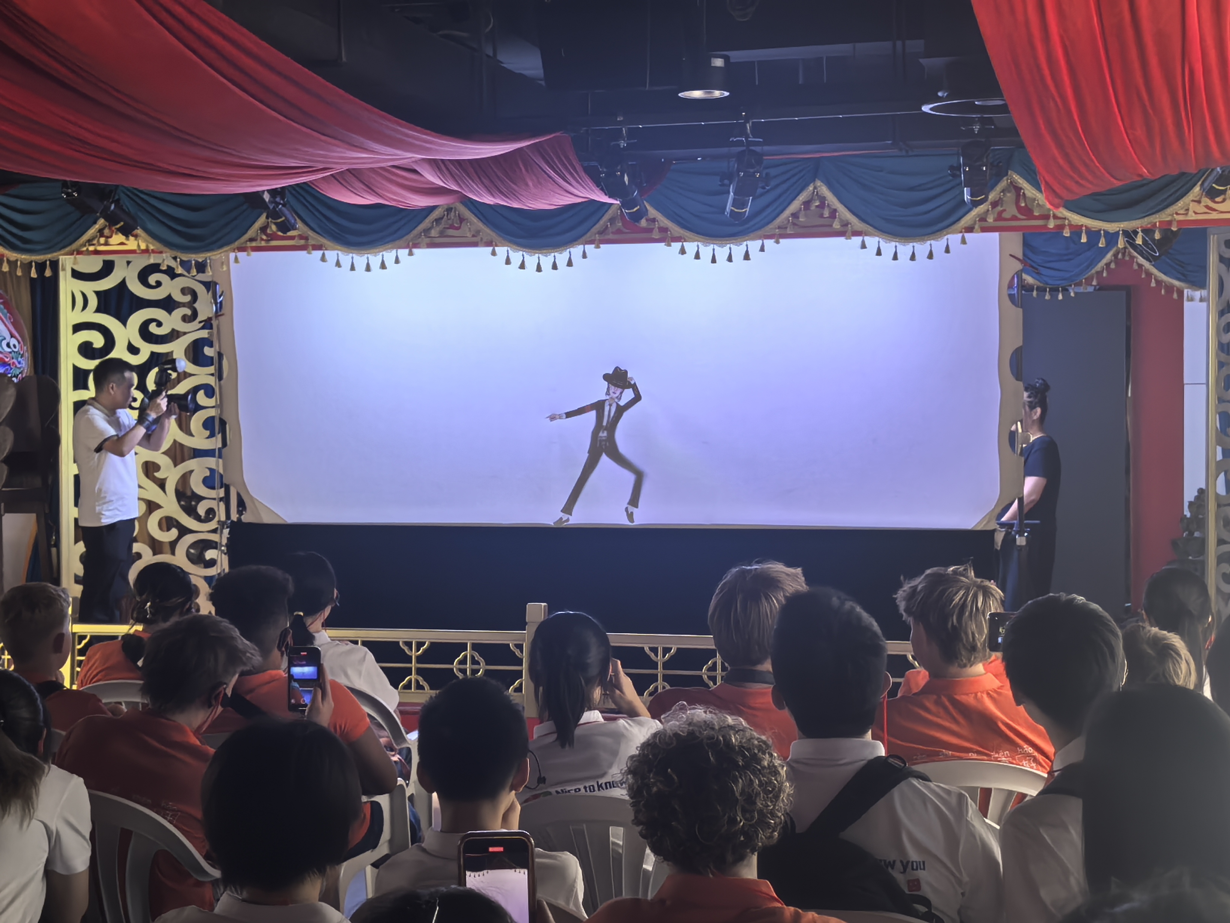 美国青少年体验“迈克尔·杰克逊”与“龙王”的混搭皮影秀