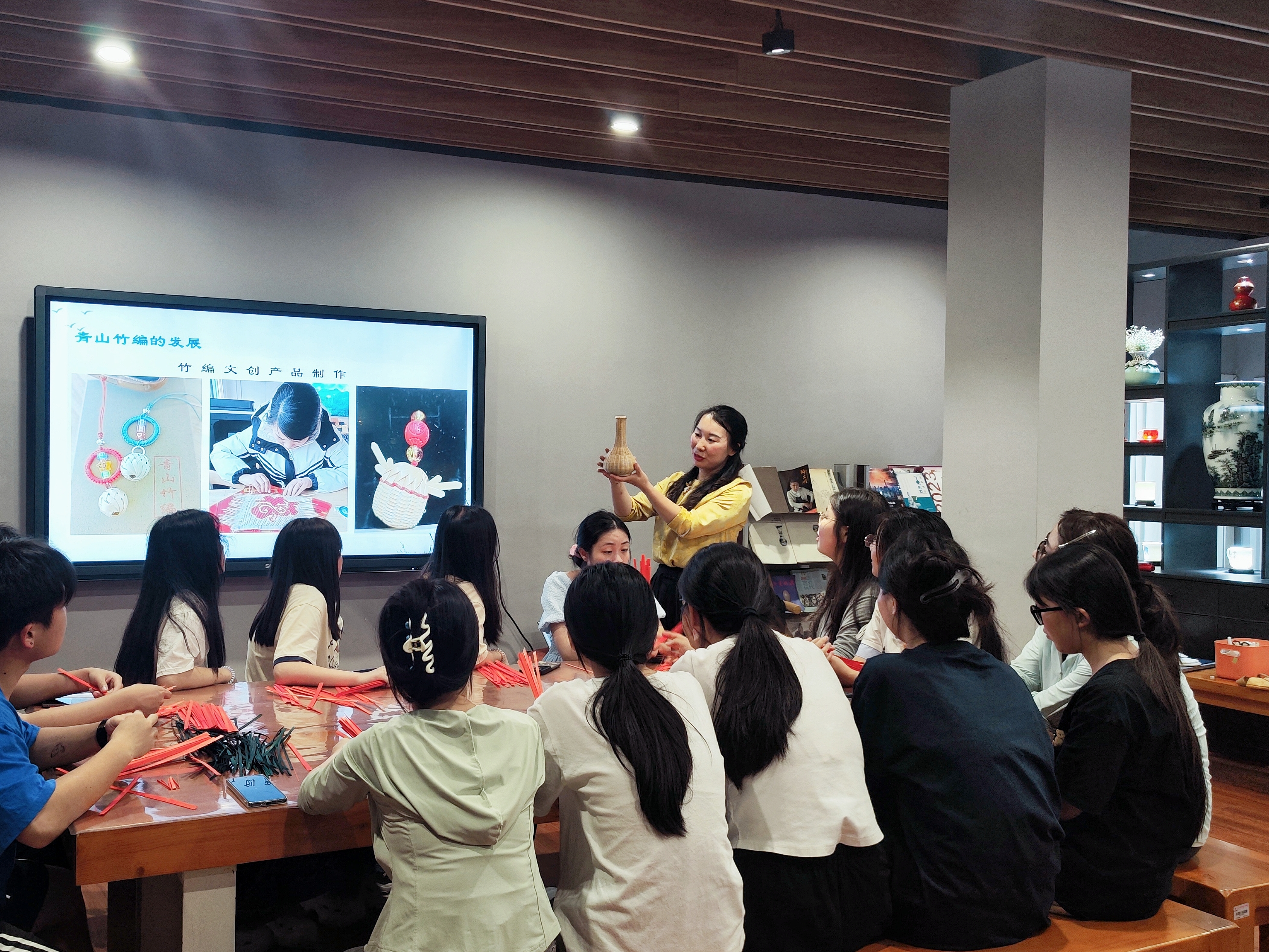 6月5日正值芒种节气,湖南省长沙市非物质文化遗产保护中心在长沙民政职业技术学院开展“星城时序·非遗万象——青春芒种·巧编竹韵”青山竹编体验课。非遗传承人袁美娇带领40余名学生体验剖篾、编织、收边等制作工序,在节气更迭中展现匠心传承。图为袁美娇为大家讲解竹编技艺。